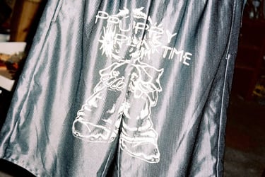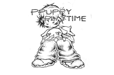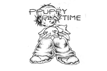 upcycling vintage tshirts with original design "ppuppyplaytime" occasionally enjoyed with rhinestones, with a warning printed on the back