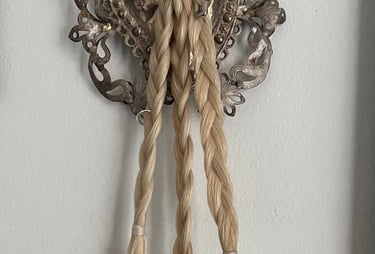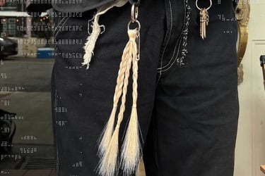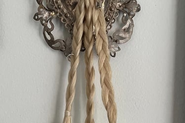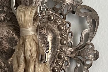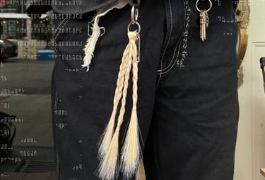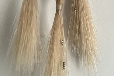 triple braided ash blonde horsehair, peppered with sterling silver beads and jump rings, a talisman of luck and tranquility